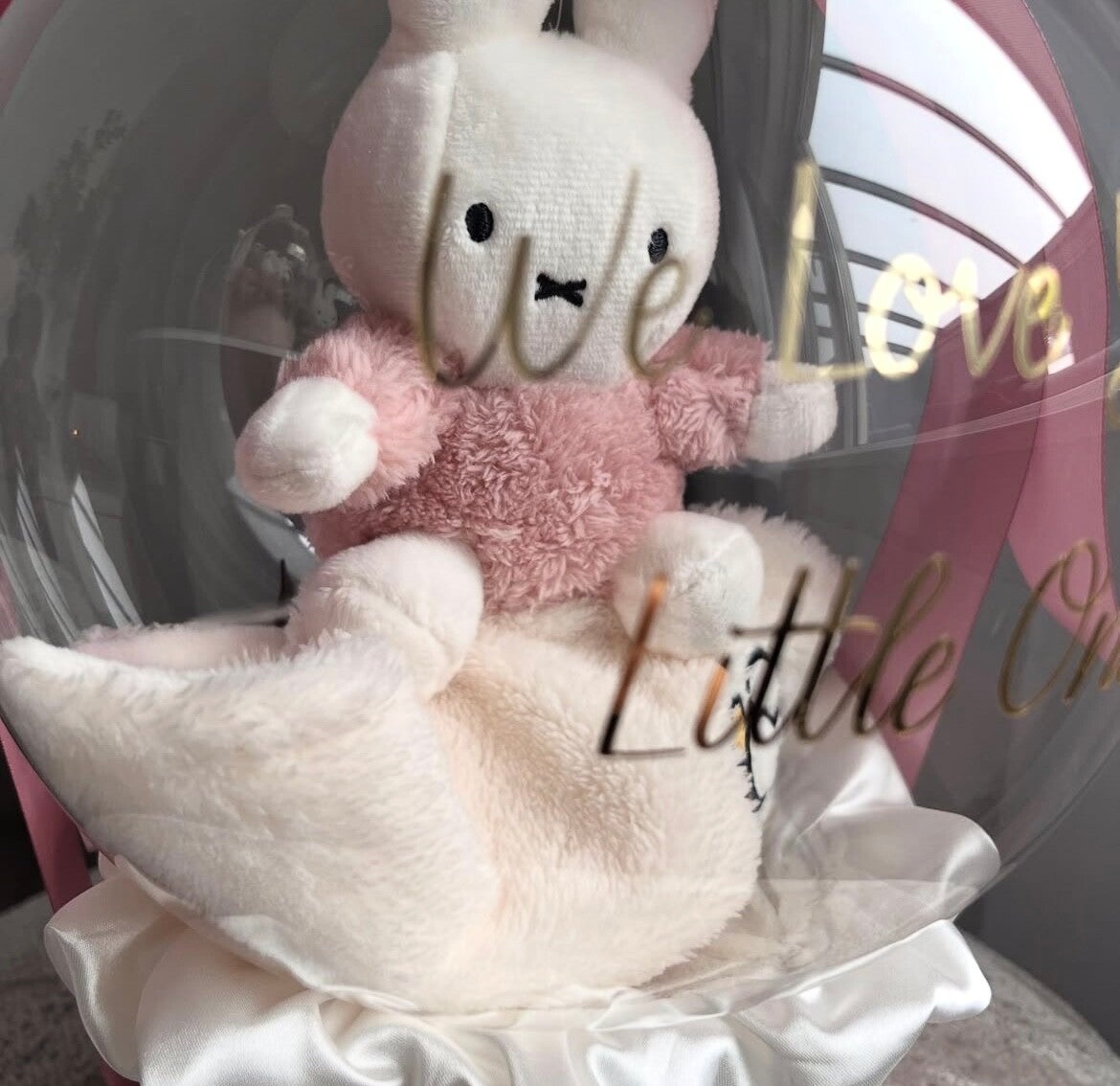 Doos ivoryNijntje knuffeldoek rozeLint rozeSatijndoek witTekst goud